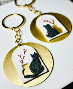 鏤空花瓶系列 - 黃銅黑貓鑰匙圈
